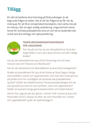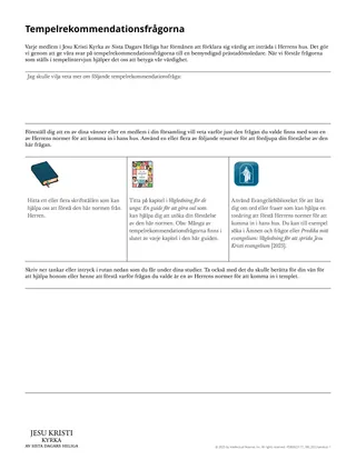 Slå upp tempelrekommendationsfrågorna som finns i Tillägg i Vägledning för de unga: En guide för att göra val [2022] och gör följande: