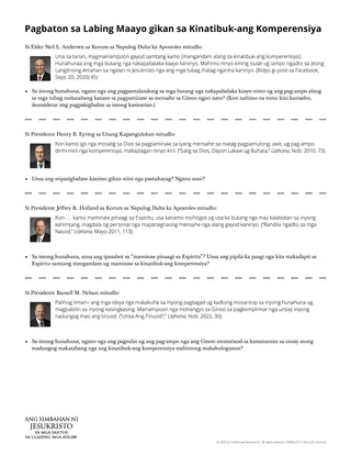 Sa sunod nga klase sa seminary human sa kinatibuk-ang komperensiya, ikonsiderar ang paghatag sa mga estudyante og kahigayonan sa pagrebyo ug pagpakigbahin sa unsay ilang nakat-onan. Mahimo nimong isulat ang pipila ka pangutana diha sa pisara, sama sa: