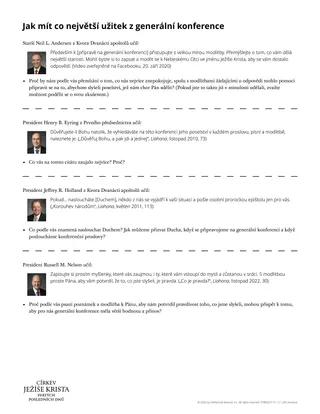 Místo handoutu nebo jako doplněk k němu byste mohli pustit video „The Blessings of General Conference“ (2:24), které je k dispozici na stránkách ChurchofJesusChrist.org.