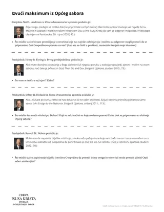 Napomena: Budući da se Opći sabor održava dva puta godišnje, možda ćete trebati podučavati ovu lekciju dva puta. Za druge načine podučavanja ove lekcije, pogledajte odsjek Dodatne aktivnosti učenja ove lekcije u Evanđeoskoj knjižnici na ChurchofJesusChrist.org.