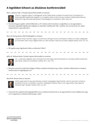 Ezt követően megkérheted a tanulókat, hogy keressenek további ötleteket A legtöbbet kihozni az általános konferenciából című kiosztmányban. Íme néhány módszer a kiosztmány eredményes használatára: