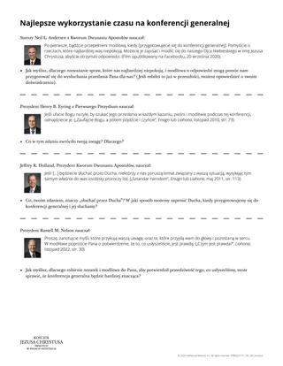 Następnie możesz poprosić uczniów, aby poszukali dodatkowych pomysłów, korzystając z ulotki „Jak najlepiej skorzystać z konferencji generalnej”. Oto kilka sposobów, jak korzystanie z tej ulotki może być skuteczne: