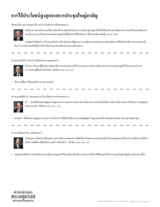 หลังจากนั้น ท่านอาจเชื้อเชิญให้นักเรียนมองหาแนวคิดเพิ่มเติมโดยใช้เอกสารแจก “ได้ประโยชน์สูงสุดจากการประชุมใหญ่สามัญ” การใช้เอกสารแจกอาจมีประสิทธิภาพด้วยวิธีต่อไปนี้: