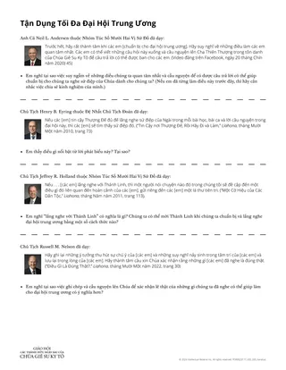 Lưu ý: Vì đại hội trung ương diễn ra hai lần mỗi năm, anh chị em có thể cần dạy bài học này hai lần. Để biết những cách khác để giảng dạy bài học này, xin xem phần Các Sinh Hoạt Học Tập Bổ Sung của bài học này trong Thư Viện Phúc Âm trên ChurchofJesusChrist.org.