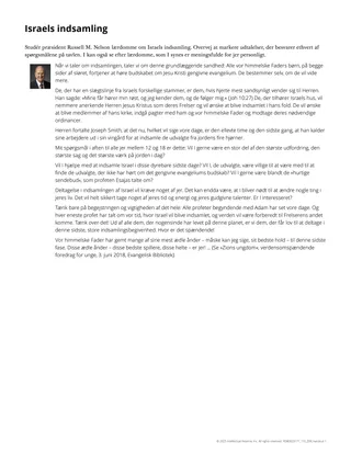 Hvis jeres elever ikke har adgang til en trykt eller digital udgave af talen, kan I overveje at give uddelingsarket »Israels indsamling« til hver elev. Dette uddelingsark indeholder en skriftlig del af talen i denne lektion. I kan også bede eleverne om at se denne del af talen i videoen »Zions ungdom«, der findes på ChurchofJesusChrist.org, fra tidskode 30:26 til 33:37.