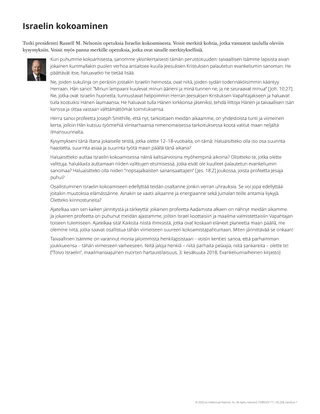 Mitä kysymyksiä sinulla tai muilla on Israelin kokoamisesta – tapahtumasta, joka presidentti Nelsonin mukaan on tärkeintä, mitä maan päällä tapahtuu juuri nyt?