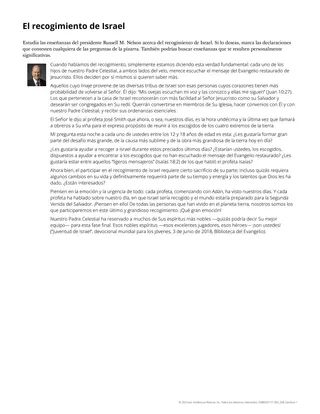 Mis queridos jóvenes extraordinarios, ustedes fueron enviados a la tierra en este preciso momento, el momento más crucial en la historia del mundo, para ayudar a recoger a Israel. No hay nada que esté ocurriendo en esta tierra ahora que sea más importante que eso. No hay nada que sea de mayor consecuencia. Absolutamente nada (“Juventud de Israel”, devocional mundial para los jóvenes, 3 de junio de 2018, Biblioteca del Evangelio).