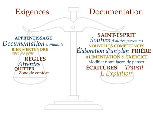 Quand vous avez les ressources nécessaires pour répondre aux exigences de l’œuvre missionnaire, vous progressez, vous apportez votre contribution et vous restez au niveau vert. Parfois, vous pouvez atteindre cet équilibre en réduisant les exigences inutiles, telles que les attentes personnelles irréalistes ou le souci de l’opinion d’autrui. Cependant, de nombreuses exigences d’une mission ne peuvent pas être réduites. Vous devrez apprendre de nouveaux documents, communiquer avec d’autres personnes, obéir à des règles, instruire, témoigner et quitter votre zone de confort.