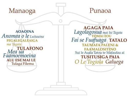 Atuatuvale, popole, le mautonu, le toafimalie, le saunia Faafitauli o le fegalegaleai lelei ma isi Faigata ona lagonaina le Agaga |