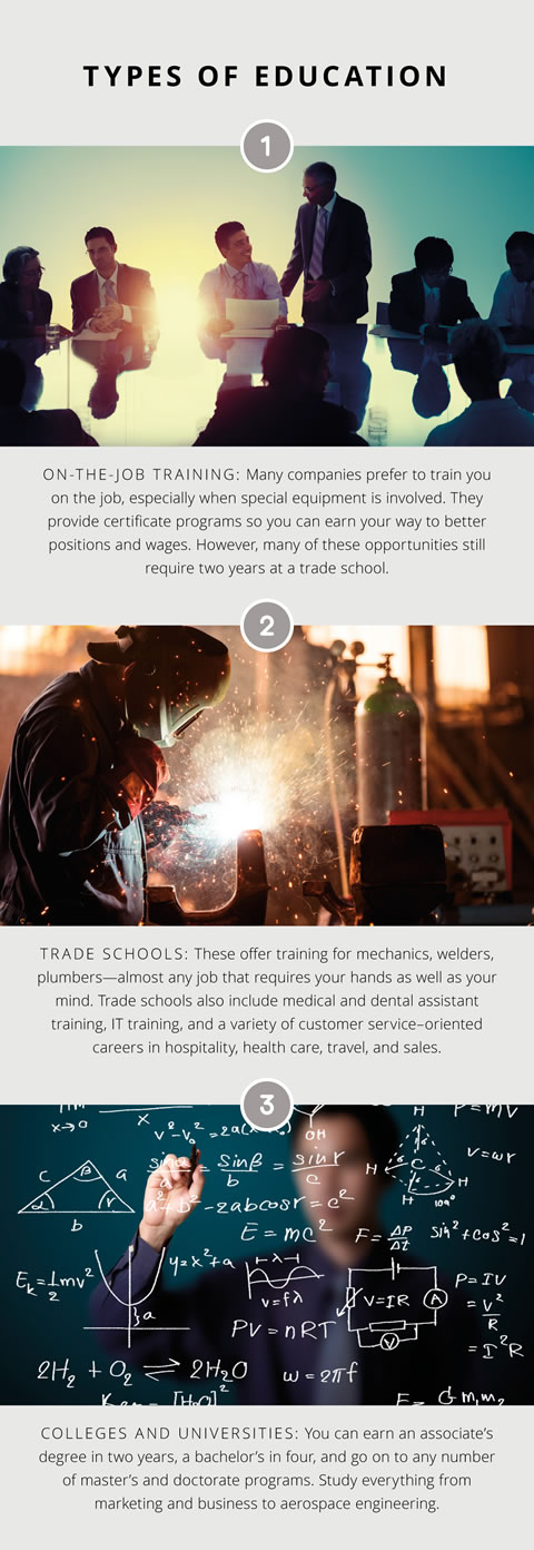 There are three types of education that generally lead to careers:
