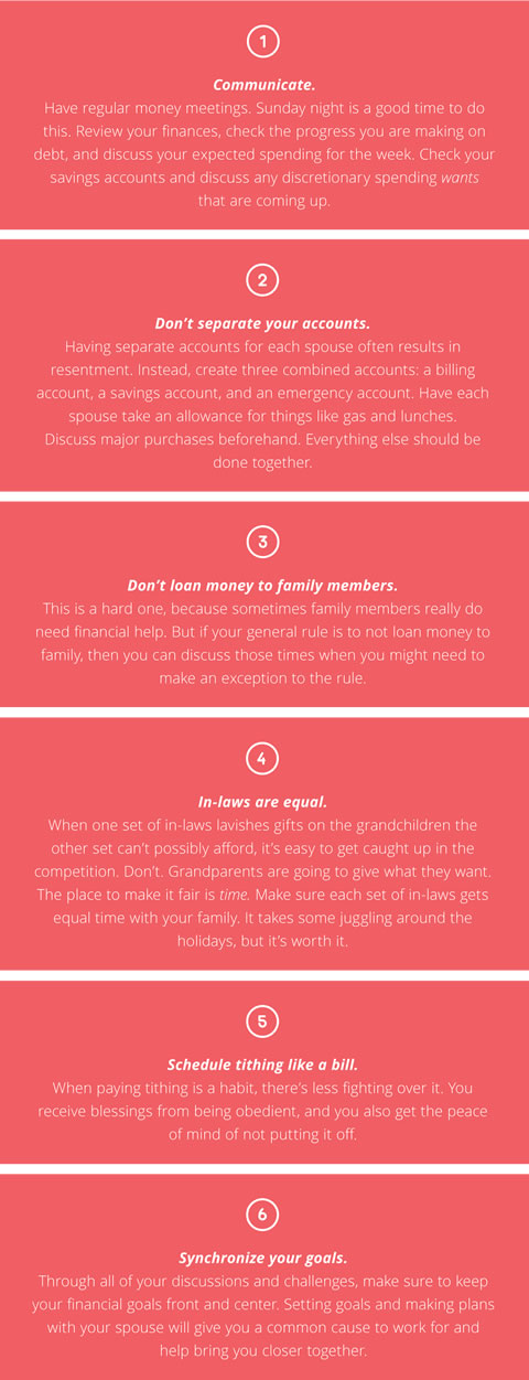 We enter into marriage with more than starry eyes and wonderful personalities. We also bring bank accounts, financial responsibilities, career expectations, and varying definitions of what is a want and what is a need. Dealing with financial stress can be difficult, but by working together with your spouse, you can move forward with faith.