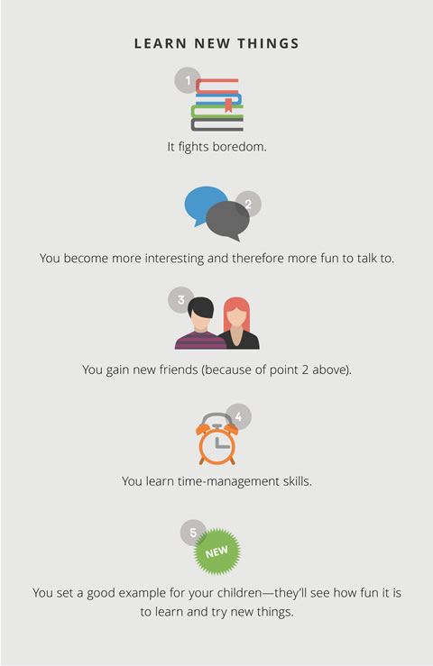What you learn is not as important as the learning process itself. And with laptops and cell phones and all that information at your fingertips, it’s never been easier. There are even apps that send you “new things to learn” each day.