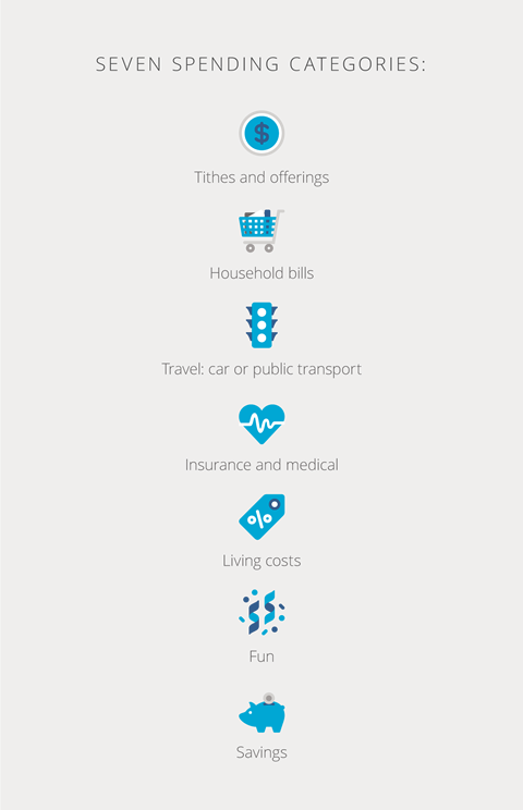Once the budget is set, a simple way to keep track of each category is to put the allotted money in envelopes marked “Household bills,” “Living costs,” and so on. You could also keep a ledger and record when you spend something in each category. Remember, the best place to save money is in the “Fun” category. Look for free things that are fun to do as a family.