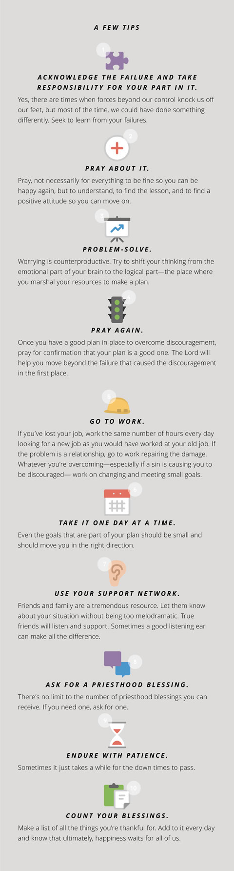 The result of both of these myths is discouragement—that feeling we get when we don’t meet the expectations we’ve set for ourselves, or when we don’t even have any expectations and just accept our current state. Failure often comes before discouragement, whether we feel like we were born a failure, that we can’t measure up, or that we did our very best and it still didn’t turn out the way we wanted.