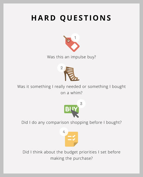 Going through these questions will help you identify your motivations for spending and the times when you are weak. Doing it every month will help you change your mindset. Sometimes what you need is a quick reminder. Write “Saving money makes me happy” on a small card and put it in your purse or wallet, right there where the money is.