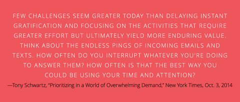 Those pings—like Pavlov’s dog, we just have to respond. It could be in the middle of a meeting, a conversation, an afternoon with the kids, or even a dinner-date with your spouse. Ping. We can’t resist, and we pick up our phones. At the end of the day, this incessant interruption of productive thought, valuable relationships, and even spiritual reflection leaves us feeling unfulfilled. By responding to every ping, we give in to instant gratification and sacrifice long-term satisfaction.