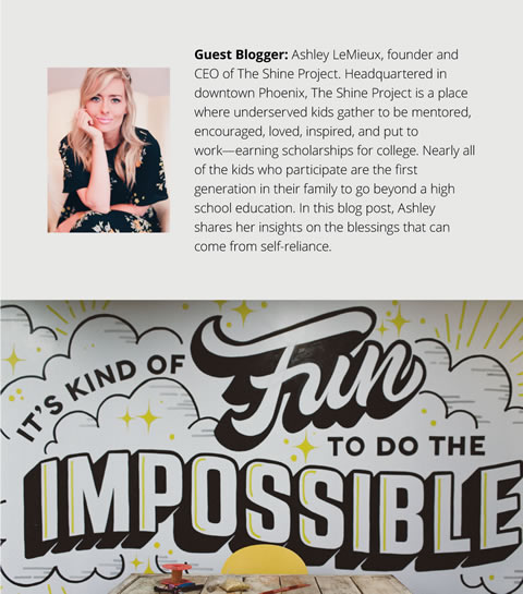 Living a life of self-reliance is hard. It means that we’re willing to work and solve problems in the Lord’s way. It means that the money we earn is managed with God’s purposes in mind and that we commit ourselves to persevere even through the most difficult of times. If we sell ourselves short and don’t grow and educate ourselves in the way God intended us to, our talents and our contributions to those around us are diminished and we miss opportunities that have temporal and eternal significance.